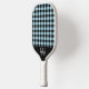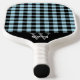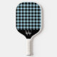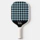 Paleta de pickleball cuadro azul con nombre de monograma. Fácil de cambiar el texto. Patrón de cuadro azul moderno en la parte delantera y trasera.