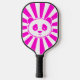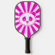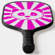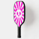 Oso Panda Rosa. Gran cara de panda en rosa y blanco con fondo de rayas. Perfecto para los amantes de los animales o para cualquiera que quiera añadir un toque divertido a su juego con esta dulce y tierna paddle gigante china panda pickleball