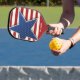 Presentamos nuestra pádel patriota que no es sólo un equipo deportivo sino un símbolo de tu inquebrantable orgullo y pasión estadounidense por el juego del pickleball. Diseñado con precisión y diseñado para actuar, este remo combina a la perfección la belleza de la bandera estadounidense con la finura del pickleball. La cara de la silla de ruedas cuenta con las estrellas y rayas icónicas, capturando vívidamente la esencia de la bandera del país.