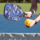 Palas De Pickleball Patrón abstracto de monograma azul franja blanca p