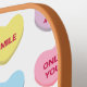 Girly lindo divertido personalizado conversación de corazones patrón Paddle de pelota. Texto de personalizable completo. Así que puedes personalizar el mensaje dentro de cada corazón y hacer que cada corazón/mensaje sea único. 16 textos de personalizable diferentes y únicos. Corazones de colores variados, rosa, naranja, morado, verde, azul claro y amarillo. Fondo de color modificable en blanco. Estos remo de bolas de bolas son grandes regalos para tus novias y amigos para el Día del El día de San Valentín / Galentine.