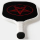 Pentagrama rojo, invertido, texturado en círculo, sobre fondo negro. Símbolo oculto. 666