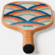 retro remo de bola de pickleball con colores naranja y azul. Doble cara y personalizada con un nombre o cualquier texto personalizado de un lado con un tipo de letra fresco y moderno.