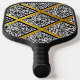 Personalice este pickleball creativo y audaz con su propio código QR. Colores: dorado, negro y blanco.
