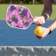 Pickleball Paddle printed with Photo Image Of Morning Glory Pink & Purple Flowers growing in a backyard garden photographed by TheFabricSeal print on demand shop at Zazzle.com #ZazzleMade ©️Original. https://www.zazzle.com/store/thefabricseal