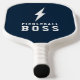Este sencillo y moderno remo de pickleball cuenta con un rayo y una tipografía colegiada que lee Pickleball Boss. La parte posterior contiene plantillas de texto para las iniciales de monograma y un nombre, lo que la convierte en un regalo perfecto y personalizado! ¡El color de fondo se puede personalizar a cualquier color que desee!