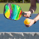 Disfrutarás jugando tu remo de pepinillo favorito con colores vivos amarillos y azules. Certificación USA Pickleball, calidad de fibra de carbono.