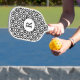 Juega con estilo con este remo de bolas de pickleball de puntos rosados, la mezcla perfecta de diversión, moda y función. Con un alegre fondo negro cubierto de divertidos puntos de polka blanca, este remo le da un toque original a cada partido. Personalízalo con tu nombre o iniciales para hacerlo único tuyo o regalarlo a tu jugador de pickleball favorito. Ya sea que se manifieste en la cancha o que muestre su equipo de personalizado, este remo seguro traerá una sonrisa y un toque de personalidad a su juego.