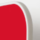 Este diseño deportivo cuenta con una banda ancha de borde superior rojo brillante y un borde inferior azul cielo con dos rayas horizontales de carreras dobles y pinstripes marrones cálidos flotantes adyacentes. El fondo es blanco.