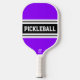 Este diseño deportivo presenta texto atlético en negrita PICKLEBALL dentro de una franja central negra amplia resaltada con dos bandas de carreras blancas adjuntas contra una franja exterior violeta brillante. Los colores y el texto de este diseño se pueden personalizar.
