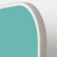 Este diseño deportivo presenta un fondo blanco con rayas de acento horizontal de borde inferior rojo brillante y azul cielo adosadas con piñones marrones cálidos. Un bloque de medio color superior aqua completa la composición.