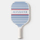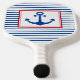 Esta divertida paleta de pickleball tiene rayas azules y blancas clásicas con un acento de rojo y un ancla náutica en la parte delantera. Personalice con su elección de nombre o texto especial en la parte posterior.