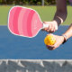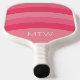 Las rayas de esta paleta de pickleball son de diferentes tonos rosas. El texto en blanco está cerca de la parte inferior para su monograma.