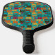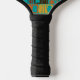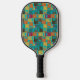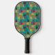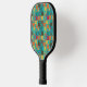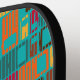 Esta paleta de pickleball tiene un diseño moderno de mediados de siglo de rectángulos redondeados, en oro, naranja, marrón, rojo profundo y verde azulado oscuro, con agujeros y líneas blancas delgadas encima de ellos, "interrumpiendo" los rectángulos. Si te gusta el diseño pero prefieres colores diferentes, envíame un mensaje.