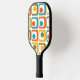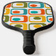 Esta paleta de pickleball tiene un diseño moderno de mediados de siglo de cuatro rectángulos redondeados en cuatro filas con ovales en su interior en naranja, amarillo, verde y turquesa.