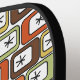 Esta paleta de pickleball de los años 1970 tiene un diseño moderno de mediados de siglo de rectángulos redondeados en verde, oro, naranja o marrón con estallidos en el interior. Si te gusta el diseño pero prefieres colores diferentes, envíame un mensaje.