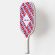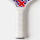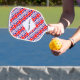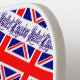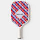 La bandera del Reino Unido de Gran Bretaña e Irlanda del Norte, también conocida como la bandera británica, la bandera del Reino Unido o la bandera de la Unión. Solía llamarse la Union Jack. Debajo de la bandera están las palabras REINO UNIDO en los colores rojo, blanco y azul de la bandera. El diseño, en esta paleta de pickleball, está embaldosado para el efecto artístico. Un espacio blanco de cuadrados chillones tiene un lugar para personalizar tu nombre. Personalizar un regalo añadiendo el nombre de otra persona