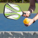 Resumen diseño moderno de palas de bola de pickleball de color blanco y negro verde con puntos de líneas curvas y patrones de giro