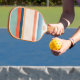 remo de pelota de pellebol con líneas retro en colores naranja y azul. Doble cara y personalizada con un nombre, teléfono, iniciales, monograma o cualquier texto personalizado en un lado. Presenta un gradiente oscuro blanco en la parte inferior para hacer que el texto personalizado destaque y le dé un aspecto más único.