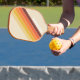 Retro Stripes Pickleball Paddle, una perfecta combinación de estilo clásico y actuación moderna. Este remo está diseñado para evocar una sensación de nostalgia mientras que ofrece una jugabilidad excepcional en la cancha de pickleball. Con su patrón de rayas de inspiración retro, este remo capta la esencia de la estética vintage. Las líneas depuradas y los colores en negrita crean un diseño visualmente llamativo que seguro va a girar la cabeza y hacer una declaración. Tanto si eres aficionado a la moda retro como si simplemente aprecias el diseño atemporal, esta reja aporta un toque nostálgico a tu juego de pickleball.