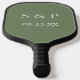 Sage Green Boda Pickleball Paddle, por favor, personaliza con las iniciales de la pareja y la fecha del boda, usando la plantilla de personalización en línea antes de hacer el pedido. El texto se copia automáticamente al otro lado de la barra para mostrar las mismas iniciales y la misma fecha en cada lado. Un elegante remo de pickleball con un elegante texto blanco en un bonito color verde sabio. Excelente como un regalo de boda o como un favor para alguien especial y también una forma de involucrarse con juegos al aire libre en una boda de destino / celebración de bodas.