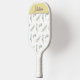 Olive branch botanical pickleball paddle design featuring a delicate leafy pattern on a soft neutral background with a scalloped border and name detail. Perfect for stylish players who love greenery, minimalist botanical aesthetics, and elegant nature inspired sports accessories.