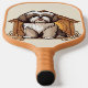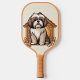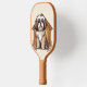 This paddle features an irresistibly cute, cartoon-style dog sitting proudly in front of a cozy wooden doghouse. The pup’s fluffy coat blends soft whites, grays, and blacks, giving it a friendly, expressive look—complete with a little pink tongue peeking out for extra charm. Scattered cartoon bones surround the scene, adding a fun, lighthearted touch that pet lovers will adore.
