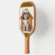 This paddle features an irresistibly cute, cartoon-style dog sitting proudly in front of a cozy wooden doghouse. The pup’s fluffy coat blends soft whites, grays, and blacks, giving it a friendly, expressive look—complete with a little pink tongue peeking out for extra charm. Scattered cartoon bones surround the scene, adding a fun, lighthearted touch that pet lovers will adore.