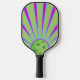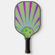 Una pádel de pickleball colorida con una bola de pickleball verde aplastar el pandillero azul y fondo verde y morado. Colorido remo de pickleball regalo para tu mamá, papá, tío, tía, hermano, hermana, vecina, abuelo, abuela, esposo, esposa, amiga o compañero de trabajo que no deja de hablar de pickleball.