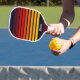 Patrón de franja colorida con el nombre personalizado Paddle de bolas de bolas. Un diseño de rayas coloridas inspirado en la puesta de sol. Las rayas son diferentes en tonos azul oscuro, rosa oscuro, rojo, naranja y amarillo. Puede añadir fácilmente su nombre o monograma para hacer de esto una paleta personal que resaltará. El nombre es una secuencia de comandos en un formato blanco grande.