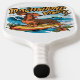 Un lindo perro dachshund montando una tabla de surf en una inmensa ola Beach Adventure cerca de una isla tropical, encarnando albornoces despreocupados de playa con las palabras "dachshund vibes".
