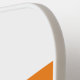 Esta moda, de diseño deportivo, presenta un fondo blanco con rayas de acento horizontal superior de color azul celeste y cálido naranja.