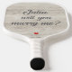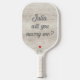 ¿Por qué no proponer en la cancha de pickleball? Imagina jugar con esta paleta y tu pareja amorosa del pepinillo lee la inscripción "(Nombre) ¿Te casarás conmigo? ¡Qué divertido! El diseño presenta un fondo falso de madera encalada, un pequeño corazón y campos de texto para la pregunta y los nombres. Muy simple y fácil de personalizar. El remo perfecto para una pareja de pickleball.