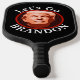 En el centro de este retrato se encuentra el retrato de un artista de Donald Trump. El retrato está rodeado por un borde rojo sobre un fondo negro, con el texto blanco "Vamos BRANDON". La parte posterior es negra sólida, con su monograma triple en blanco en la parte inferior.