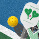 Celebra tu amor el uno por el otro y tu amor por el pickleball con esta paleta de pickleball personalizada. La parte delantera de la paleta presenta ilustraciones de paletas de pickleball en forma de corazón verdes y una pelota de pickleball rosa. Está lista para ser personalizada con tu propio titular. Tus iniciales en las paletas y tus nombres debajo. La parte posterior de la paleta tiene espacios para agregar dos de tus fotos junto con leyendas personalizadas. Tus fotos están colocadas sobre un fondo de gingham verde y blanco.