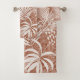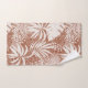 Un elegante patrón boho de hojas de palma blancas tropicales sobre toallas de baño de fondo de taupe rosa. Mezcla de tonalidades de boho terrenal con un estilo tropical o costero de hojas de palma. Ideal para primavera o verano. Perfecto para una casa de playa costera.