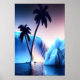 Dos palmeras en el océano con un Iceberg cerca, un fresco arte único de la naturaleza. Este es un arte generado por IA.