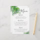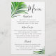 Nuestra moderna versión minimalista de la tendencia de la vegetación tropical en un menú para una boda en la playa de destino o fiesta temática tropical. Hojas de palmeras en un color verde tropical exuberante acentuado con texto gris oscuro. ・ ・ ・ Haga clic en el PERSONALIZAR para cambiar las fuentes, organizar el texto y seleccionar cualquier color de fondo para coordinar con su elegante boda en la playa. ・ ・ ・ Visite nuestra tienda de artículos para mayor coordinación.