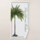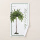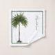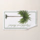 La elegante palmera forma parte del dosel sobre los nombres. Perfecto para un compromiso o un regalo de boda. Elegante diseño tropical vintage. La palmera está sobre un fondo sencillo de blanco con un marco verde.