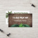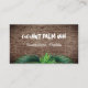 Cuadros de negocios con temática tropical, palmeras con plantilla de código QR. Las tarjetas de doble cara tienen fondo de corteza de palmera en el frente con dos líneas de texto. Usar para nombre de negocio, o nombre personal con ocupación. En la parte posterior, agregue más texto y código QR, o logotipo, o imagen pequeña / foto. Dos imágenes de palmeras decoran el fondo blanco. Las fuentes son modernas y lúdicas, o cambiarlas según prefieras.
