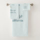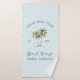 Añade un toque tropical a tu casa de playa con esta toalla de baño costera. Con palmeras azules, textura de madera y un nombre personalizado con un año establecido.