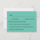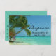 Personalizar este RSVP con los detalles de su boda. Se trata de una pintura acuarela de una playa con palmeras, un matorral florido y el océano en bonitos tonos azules. Personalice este RSVP con la información de su boda. La parte trasera tiene espacio para más detalles. El color de fondo es un verde espuma marina, puede cambiar el color o eliminarlo pulsando sobre el botón Personalizar. A continuación, seleccione Editar, Fondo. Aparecerá una paleta de colores. Una vez elegido otro color, debe ver los cambios inmediatamente. Para guardar los cambios, haga clic en Listo.
