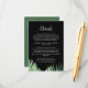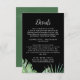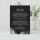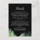 Esta tarjeta de alojamiento con detalles de palma negra tropical silvestre es perfecta para una boda de playa o destino. El diseño presenta una exótica gama de hojas de plátano de palmera color agua verde, helechos, follaje, plantas botánicas y vegetación sobre un fondo negro para un audaz ambiente tropical de verano.