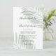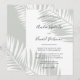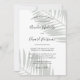 La elegante invitación a la boda de palmeras verdes de salmuera presenta un hermoso color verde mudo y hojas de palmera tropicales modernas.
