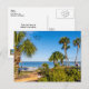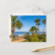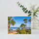 Tarjeta postal souvenir con una vista tranquila de la mañana de algunas palmeras en Gulf Breeze, Florida, Estados Unidos. Hay una mesa y sillas bajo los árboles que forman el lugar perfecto para relajarse y disfrutar de la vista. ¿Buscas más impresiones o productos? No dudes en visitar mi tienda: http://www.zazzle.com/timelessmomentsphtgy