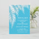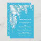 Las frondas de palmas blancas con un fondo azul (¡Puedes cambiar a cualquier color de fondo!) en estas TARJETAS SAVE THE DATE para invitaciones de cumpleaños, invitaciones a duchas de novias, invitaciones a fiestas de retiro, invitaciones de boda y más, solamente cambia la redacción. Haga clic en PERSONALIZAR para cambiar el color de fondo, los tipos de letra y agregar texto. Ver invitaciones y artículos de correspondencia en nuestra tienda —> http://bit.ly/2UyWIVj <—