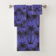 Modernas palmeras botánicas negras sobre el conjunto azul de toallas de baño. Sencillo y elegante.