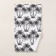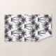 Modernas palmeras botánicas negras sobre un juego blanco de toallas de baño. Sencillo y elegante.