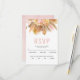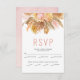 Tarjeta de respuesta RSVP de boda floral suave rosa con hojas de palma secas tropicales, pasto pampas y flores de protea. Este bonito diseño boda incluye un ramo floral de hojas de palma secas, flores de protea y pasto de pampas.