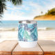 Este elegante vaso de vino termal mantendrá las bebidas frías en verano y calientes en invierno, mostradas en una huella de palmeras tropicales de múltiples tonos azules. Color Multi Blue Personalizar este elemento y añádalo o compre tal como está. Imagen de stock